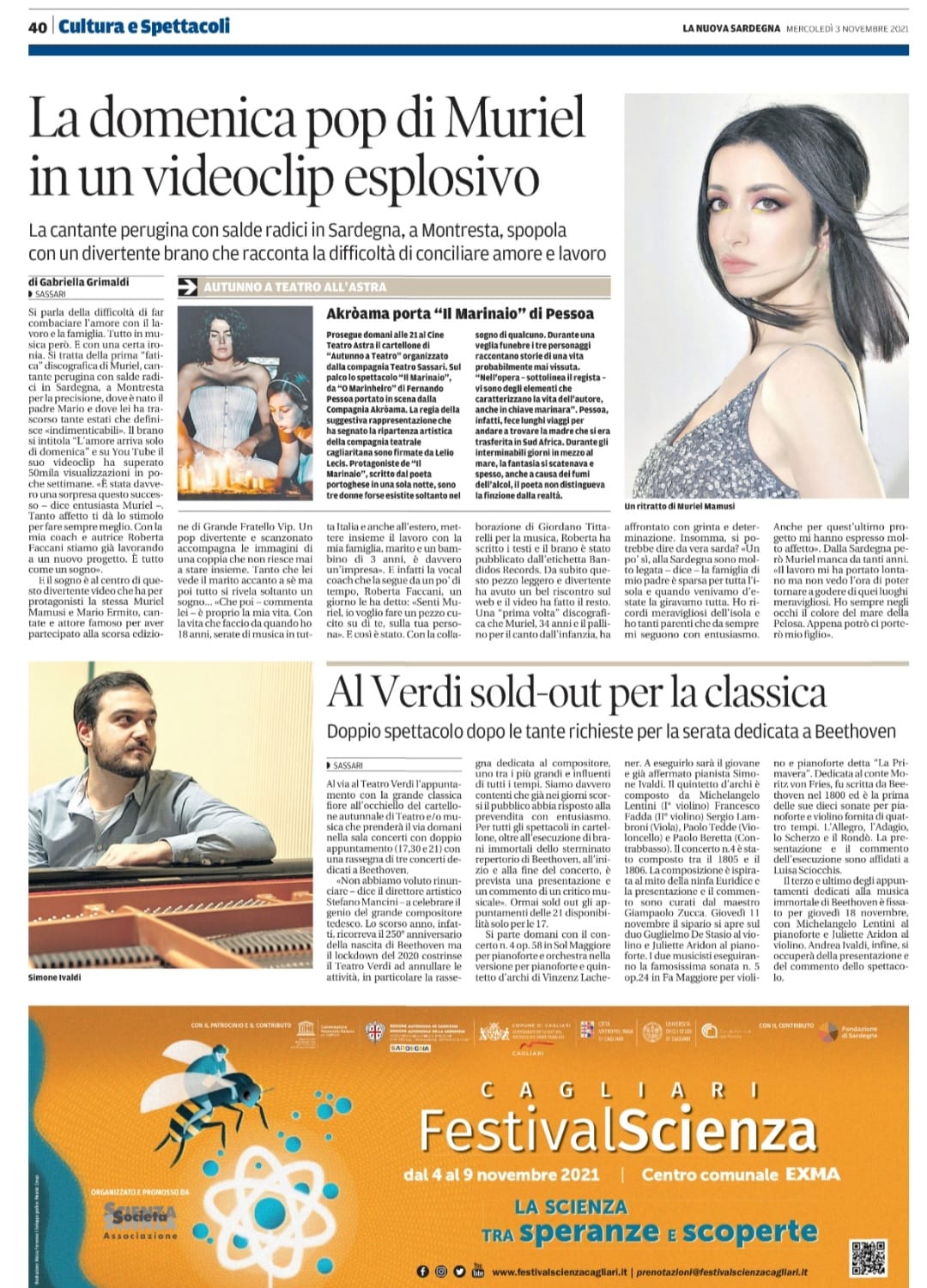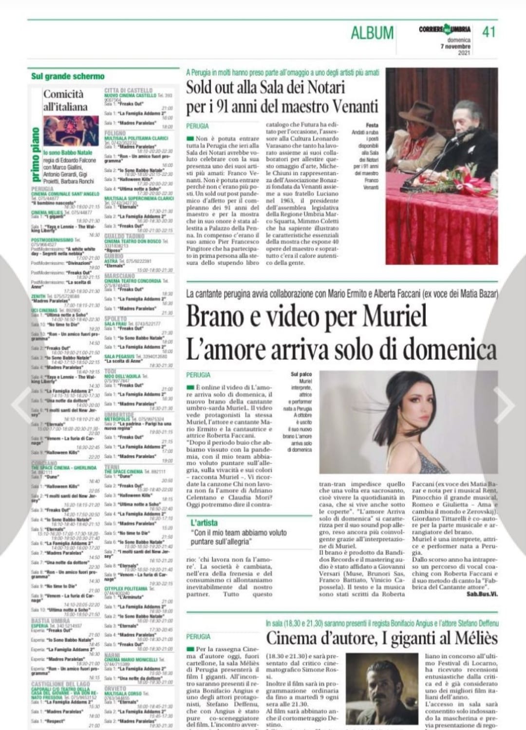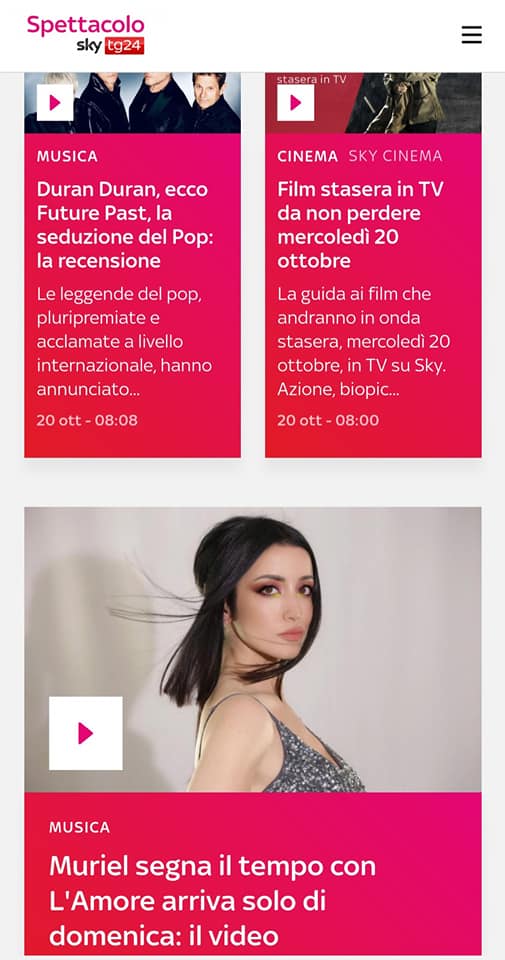 20 OTTOBRE ESCE IN ANTEPRIMA NAZIONALE SU SKYTG24 IL VIDEOCLIP UFFICIALE AU YOUTUBE CON PROTAGONISTI MURIEL E L'ATTORE MARIO ERMITO,PARTECIPANTE ALL'ULTIMO GRANDE FRATELLO VIP